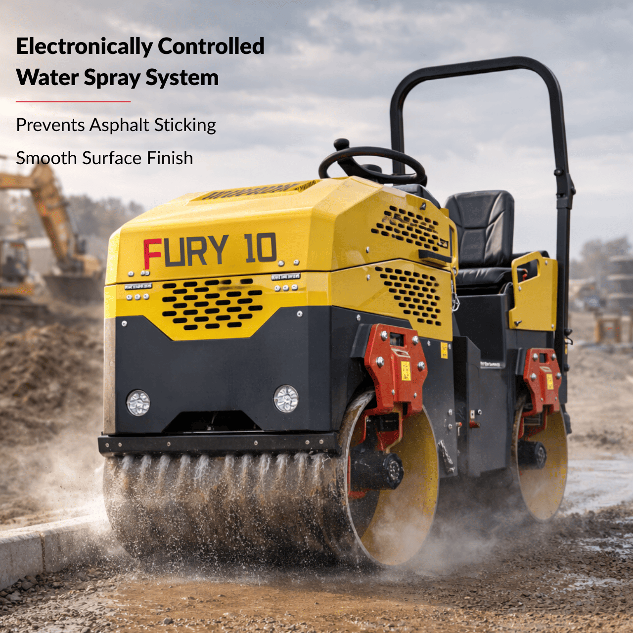 Designed for safe, precise, and user-friendly operation, this machine features a fully hydraulically actuated drive system with dual-wheel drive on both front and rear wheels for stable traction and smooth control. Hydraulically actuated veer steering ensures accurate maneuvering in tight spaces, while the electronically controlled pressure spray water sprinkler system improves moisture control and compaction quality.